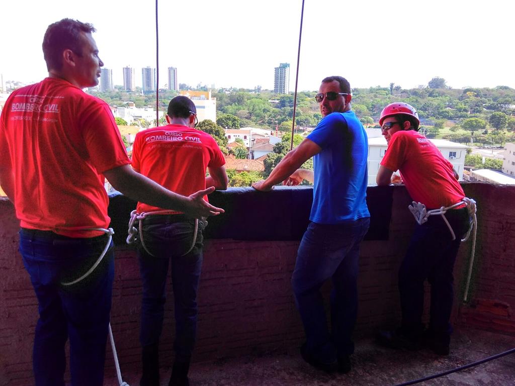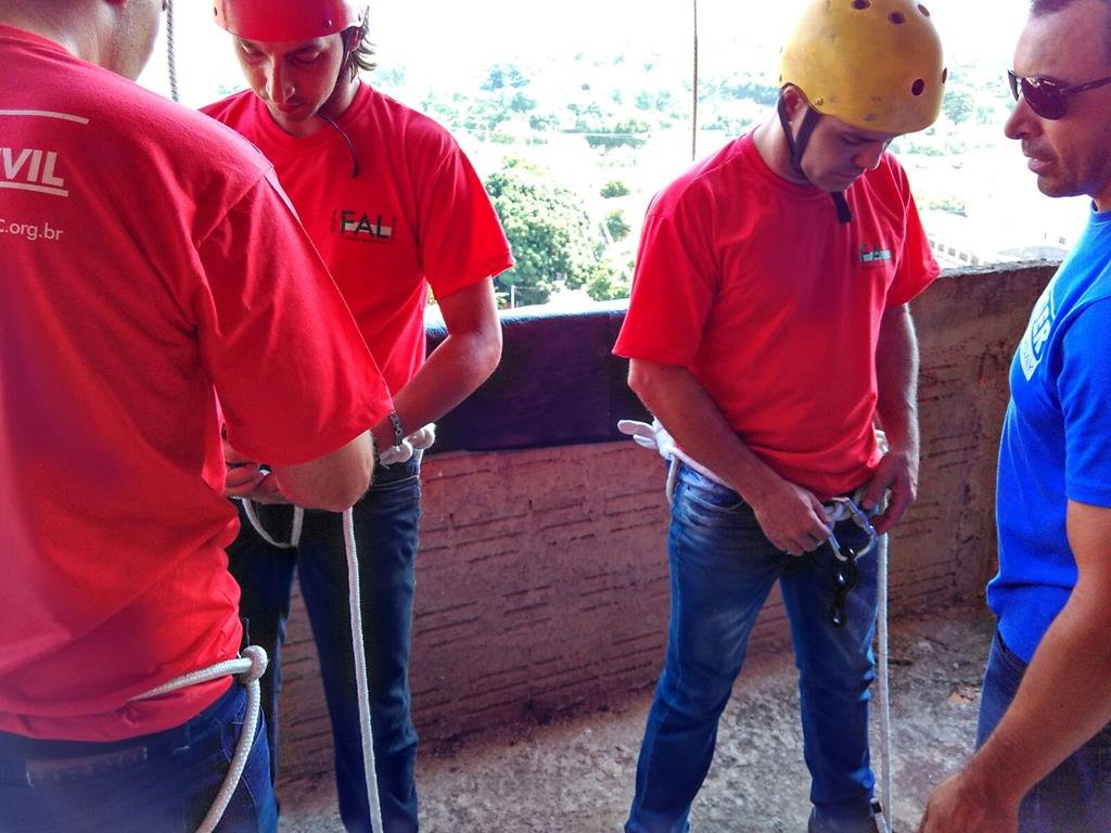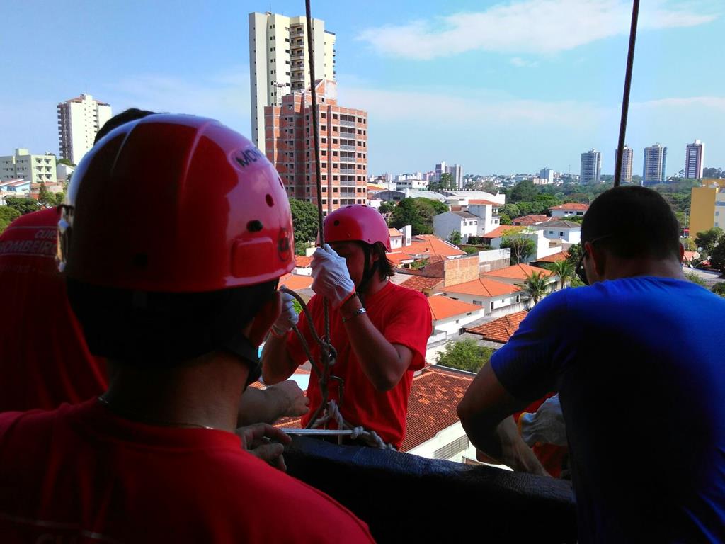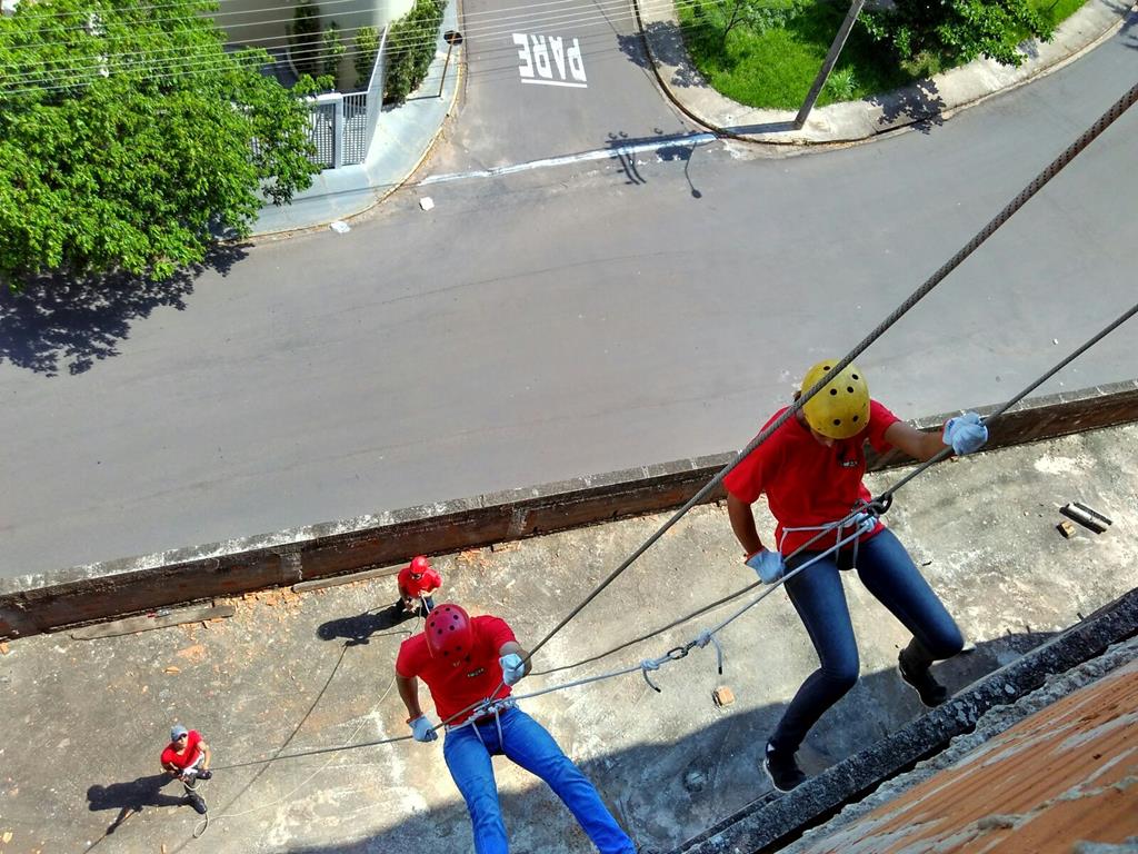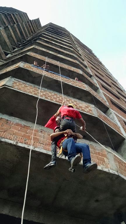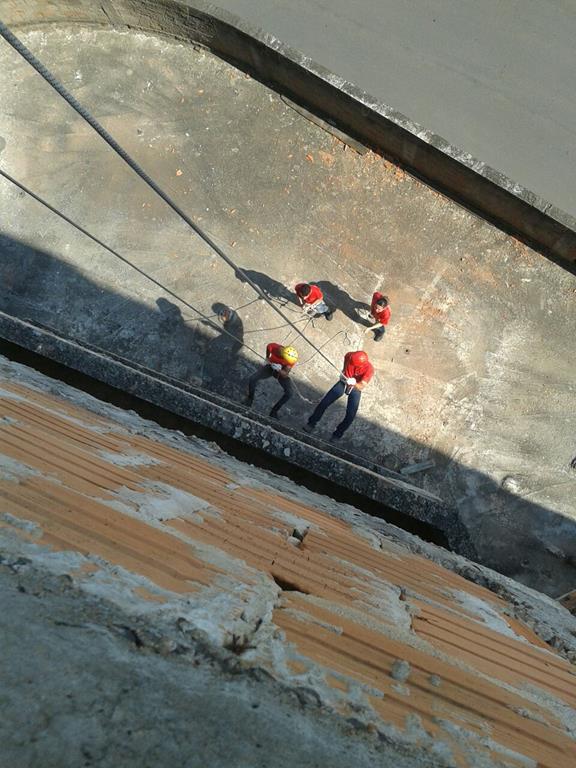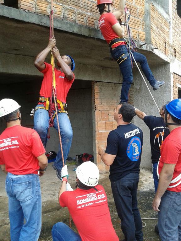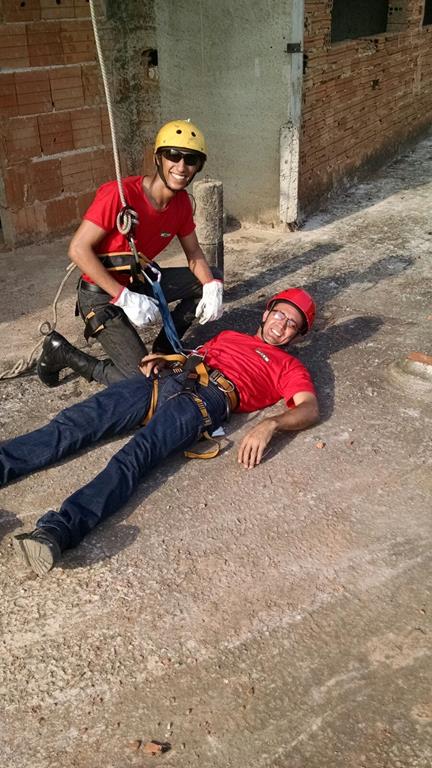 Bombeiro Civil - Aula prática de resgate em altura, turma 3.