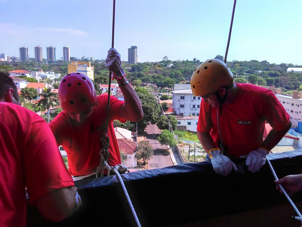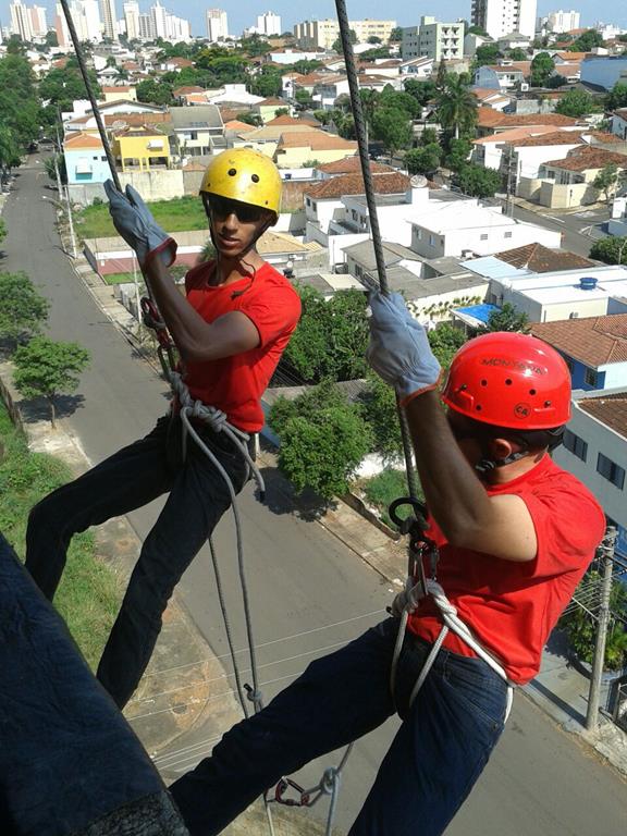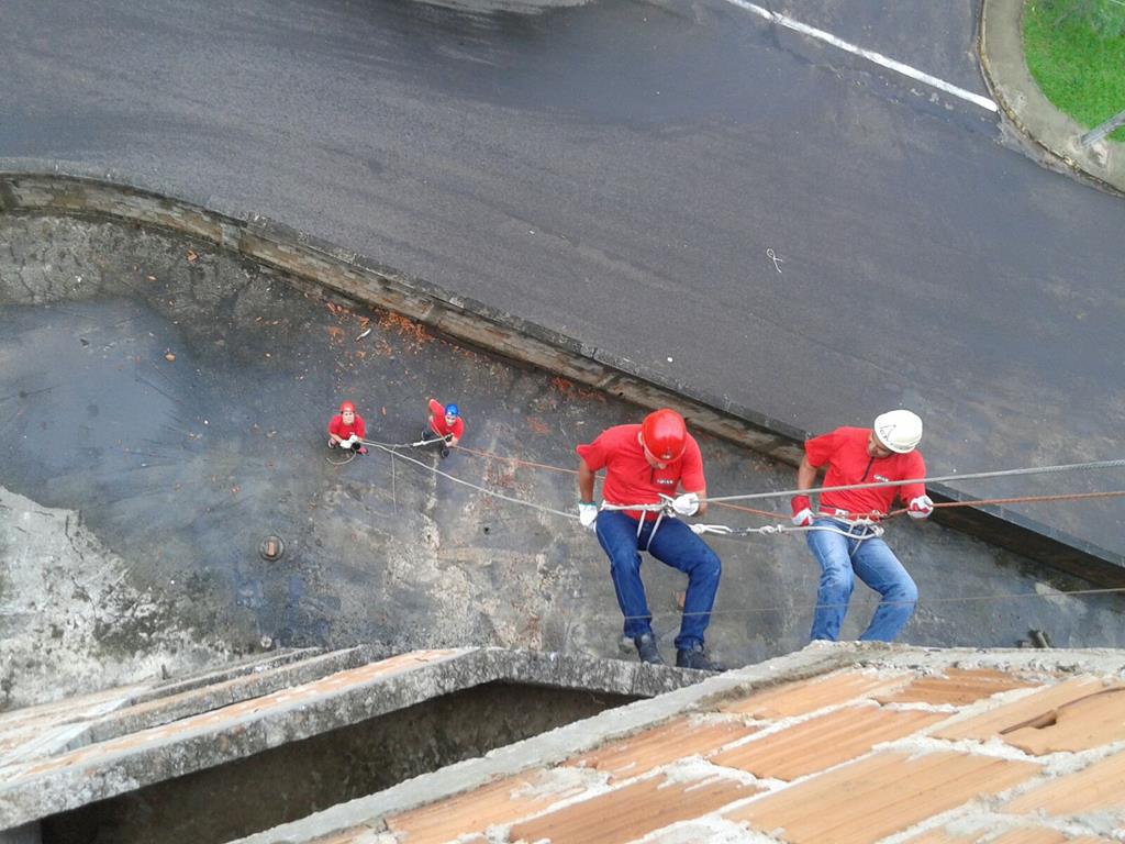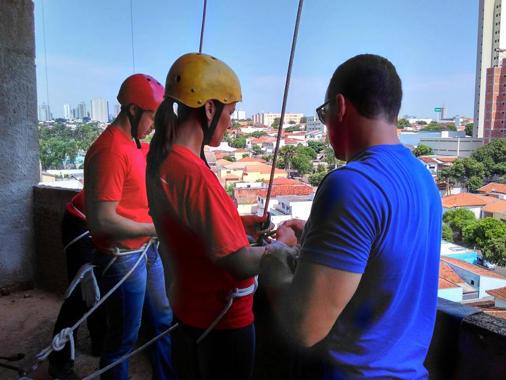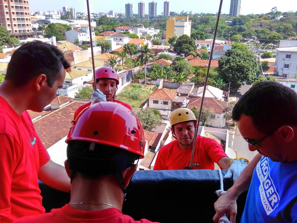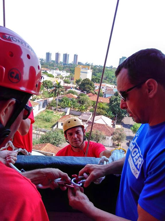 Bombeiro Civil - Aula prática de resgate em altura, turma 3.